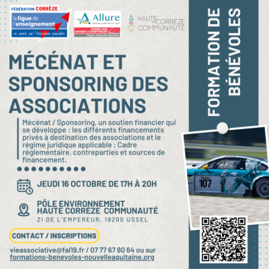 👉INSCRIPTION en suivant ce lien : https://formations-benevoles-nouvelleaquitaine.org/formation/mecenat-et-sponsoring-des-associations/ ou au 07.77.67.80.64