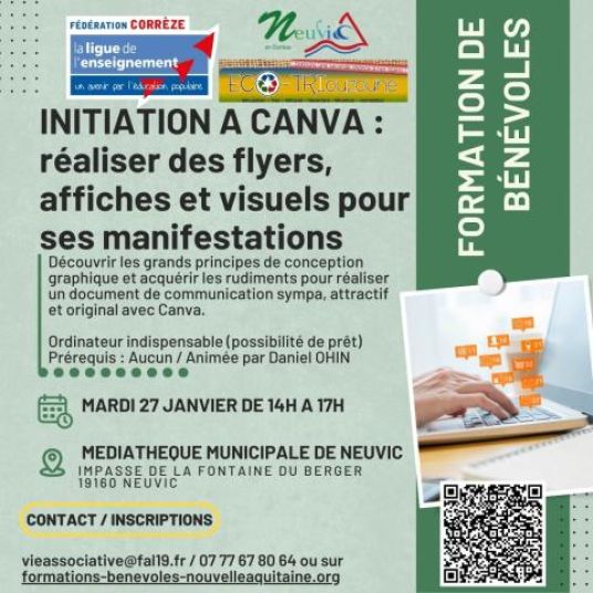 Formation de bénévoles : Initiation à Canva, réaliser des flyers, affiches et visuels pour vos manifestations