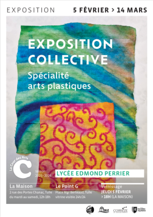 Le Projet : Nous avons le plaisir de vous inviter à l’exposition collective des élèves de terminale spécialité arts plastiques. Composée de 16 propositions artistiques, cette exposition présente des réflexions autour des thèmes abordés au programme : « nature à l’oeuvre », « matériaux augmentés » et « documenter (est) un verbe ». Sous l’impulsion de ces thématiques, les élèves ont exploré leur approche des matériaux, en cherchant à dégager leurs caractéristiques, leurs sens, en les transformant, en les transfigurant... Ces sujets deviennent un terrain de jeu où chaque production dévoile une sensibilité, une matière, un geste et interroge notre perception du quotidien. Cette exposition, à la fois personnelle et collective, témoigne de la diversité, de l’originalité et de l’implication des élèves.